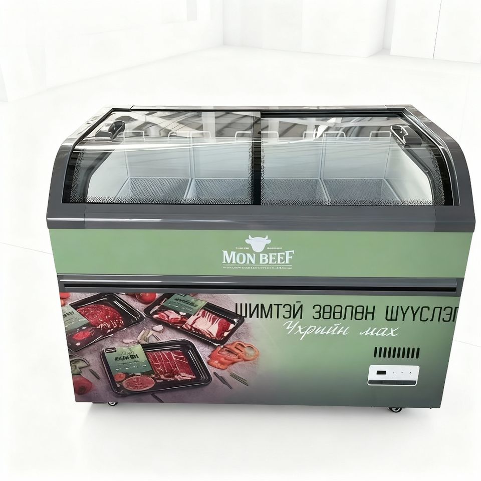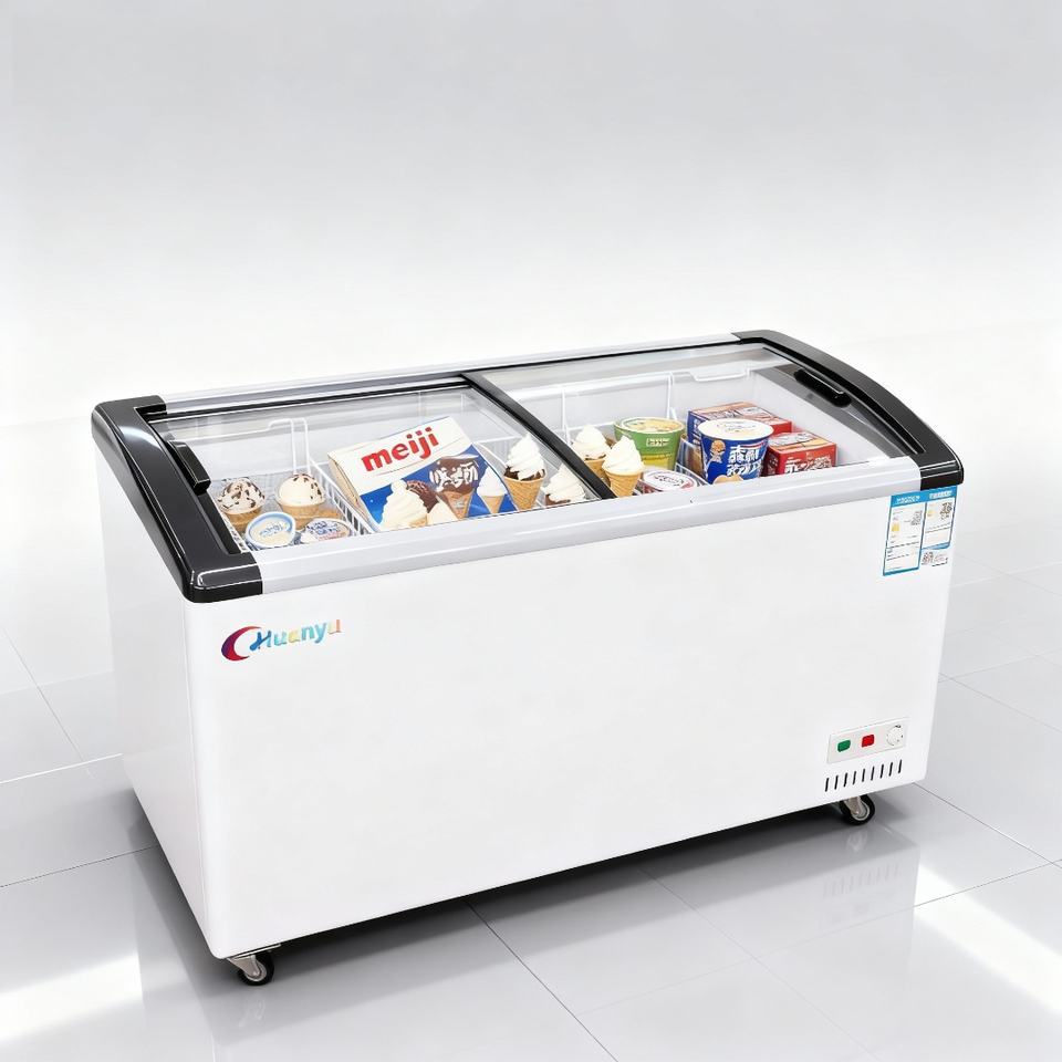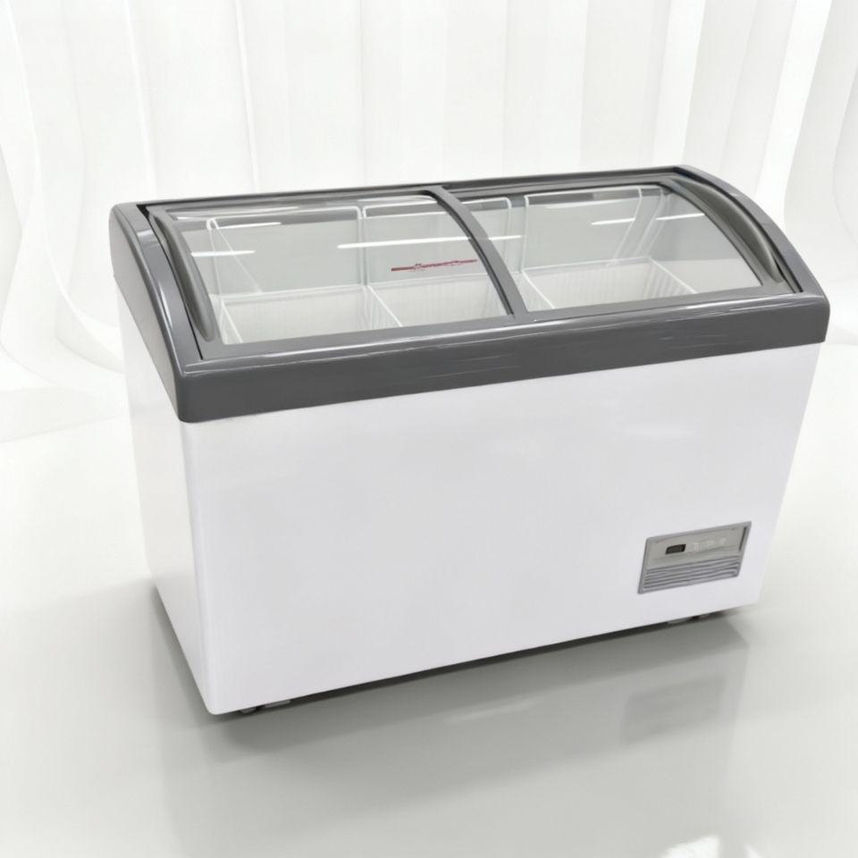 Congélateur horizontal commercial avec porte vitrée et refroidissement par air, dessus en verre pour la présentation de glaces et de gelato