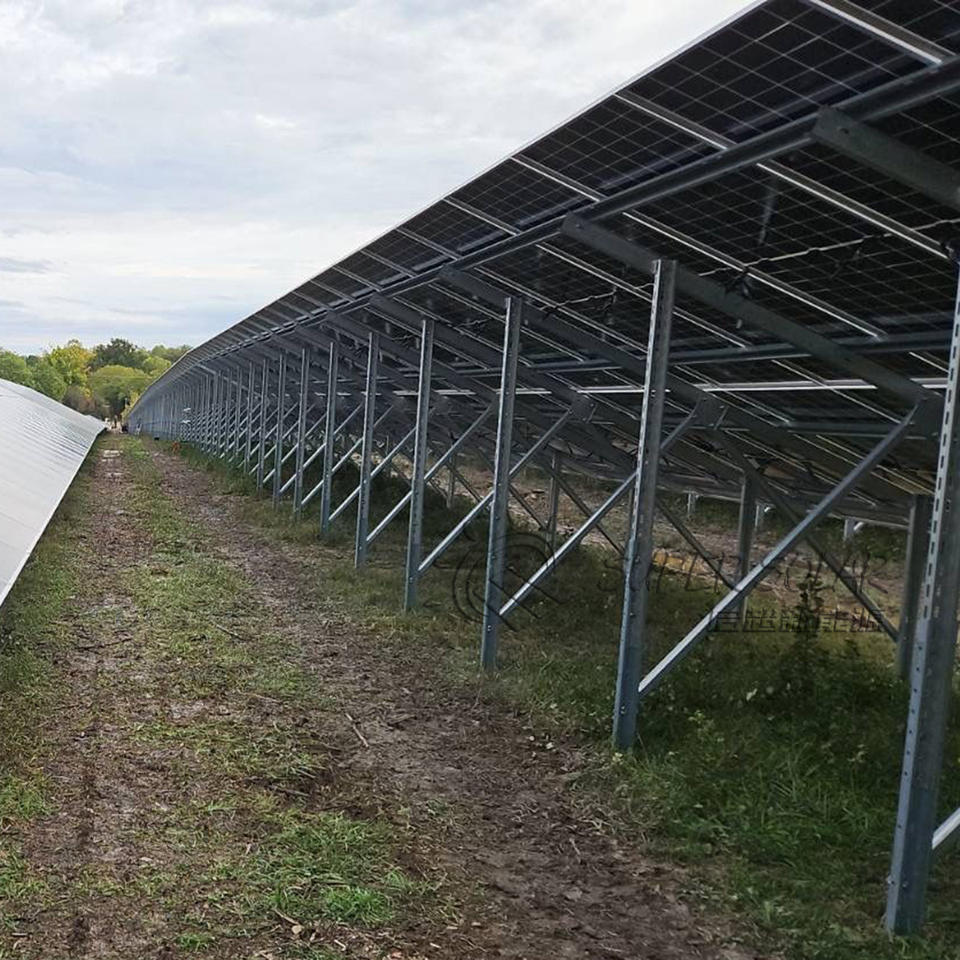 Système de support solaire au sol galvanisé à chaud commercial, résistance au vent de 60 m/s, charge de neige de 1,5 kN/m2 pour grande station solaire