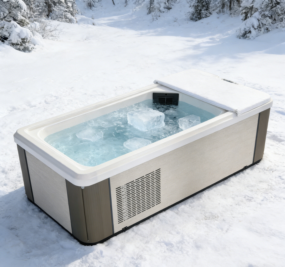 Baignoire à glace commerciale tout-en-un avec système de refroidissement, filtre à eau, ozone et spa de récupération en acrylique
