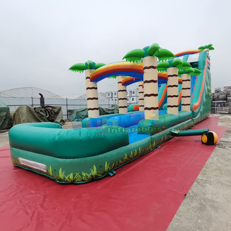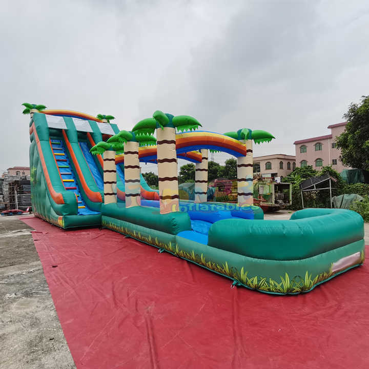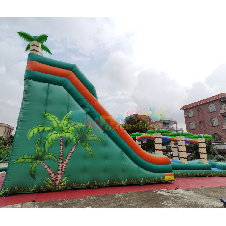 Toboggan aquatique gonflable géant commercial intérieur/extérieur, château gonflable tropical à thème, trampoline aquatique