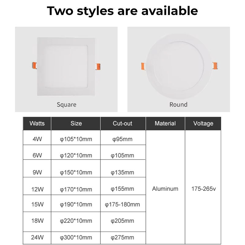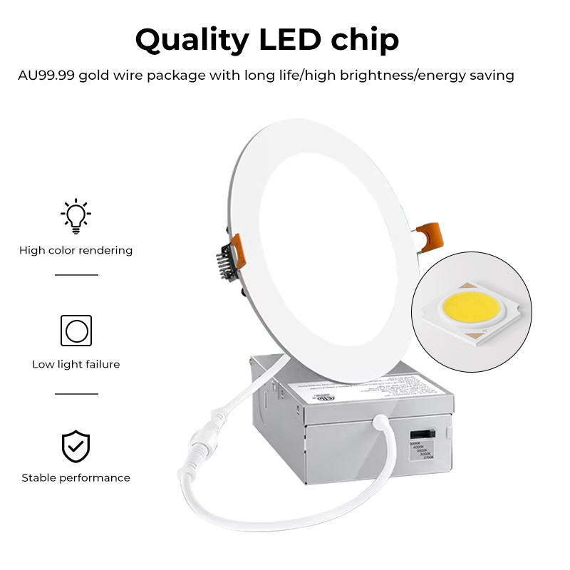 Plafonnier LED encastré ultra-plat pour intérieur, haute efficacité énergétique, à intensité variable