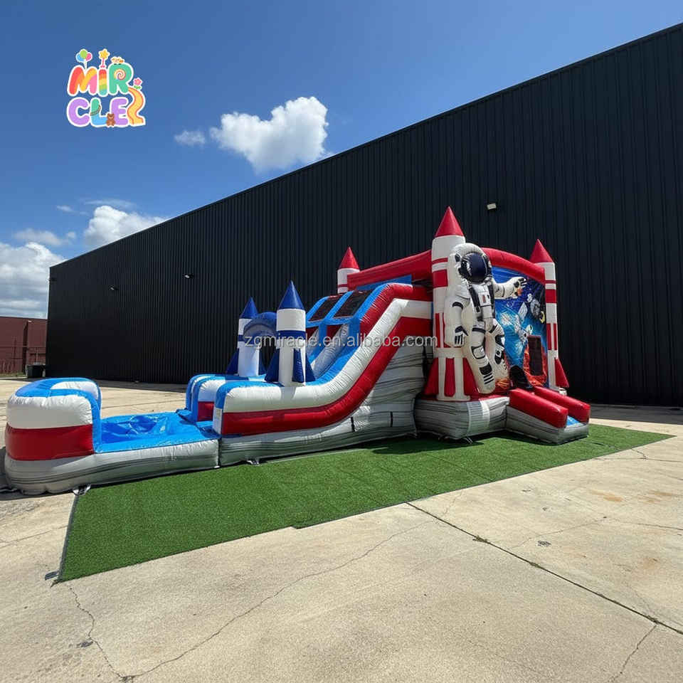Château Gonflable Commercial Bouncer Toboggan Eau Combo Wet Dry avec Panier Basket OEM Grossiste