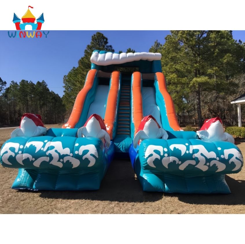 Glissière d'eau gonflable de dauphin de marque commerciale de Winway modèle Ww11 doubles voies parcs extérieurs matériel de PVC Durable eau d'été