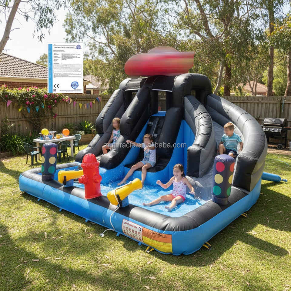 Toboggan Eau Gonflable Lightning McQueen avec Piscine, Combo Château Gonflable Commercial pour Location Événements Enfants