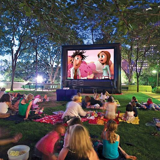 Théâtre extérieur gonflable commercial, cinéma de location portatif extérieur de projecteur avant et arrière de partie de famille
