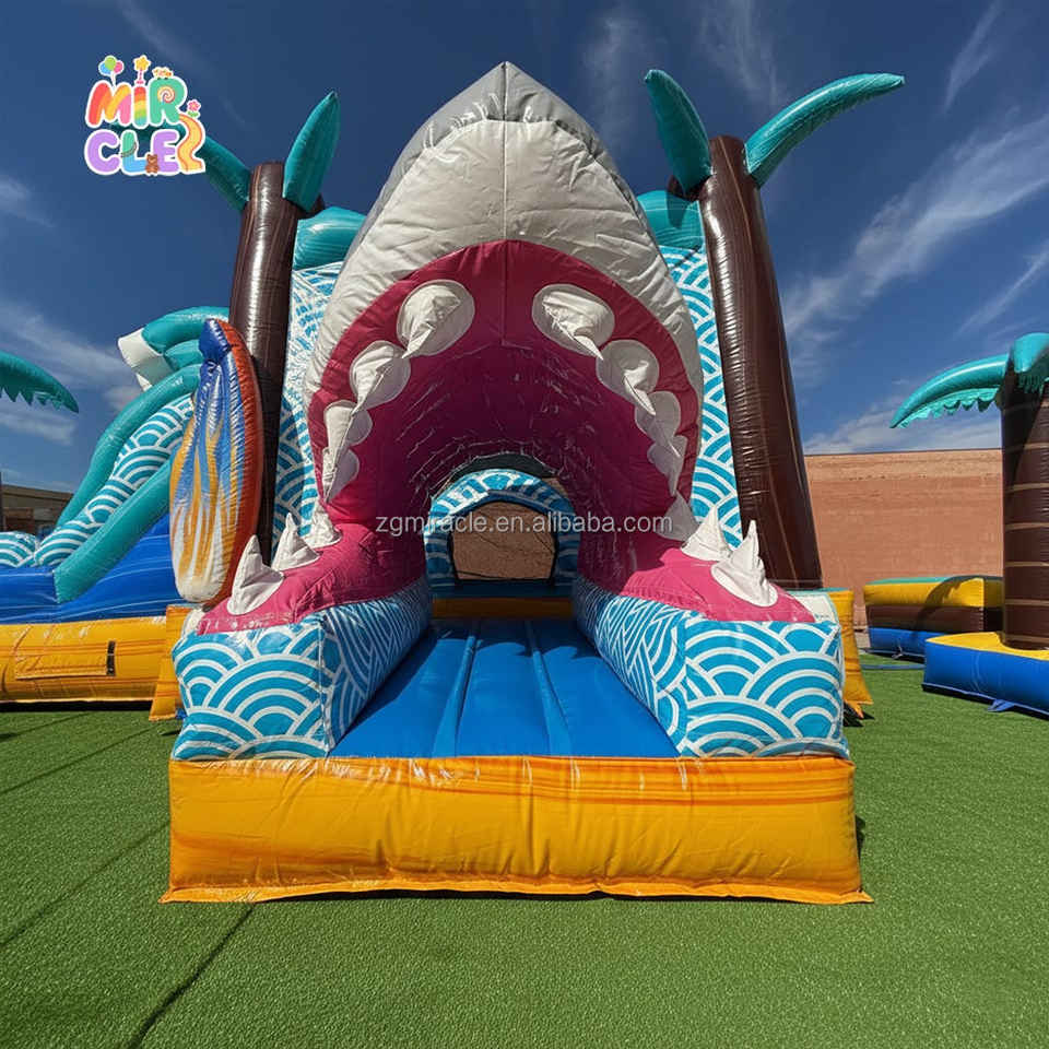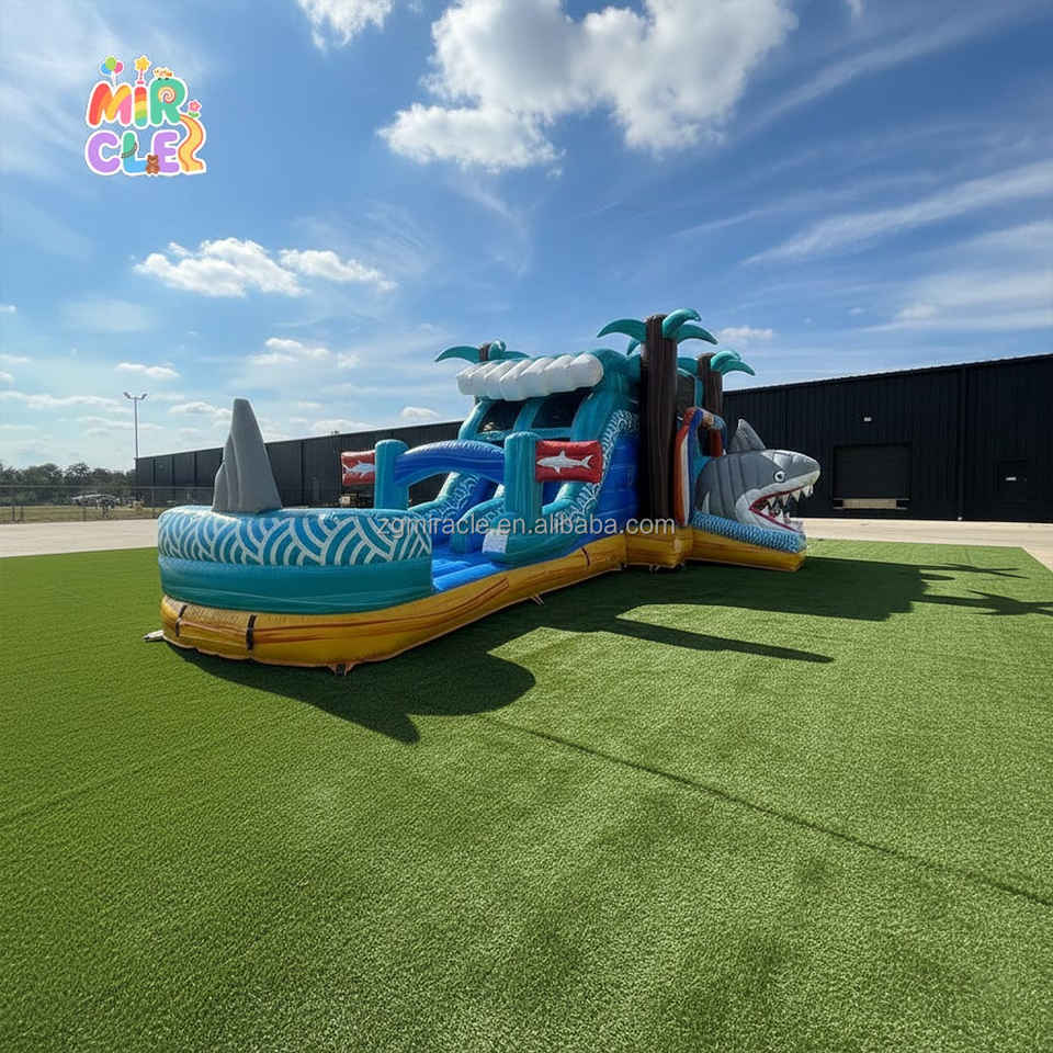 Commercial Inflatable Shark Bounce House Water Slide Combo with Pool Ocean Theme Wet Dry for Kids Party Rental