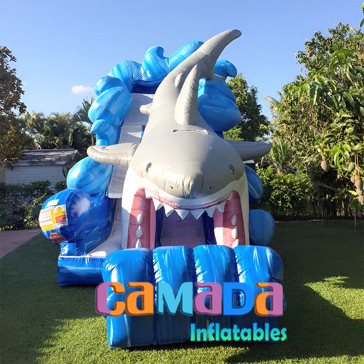 Glissière d'eau gonflable commerciale de requin pour l'enfant grand cavalier de maison de rebond bon marché