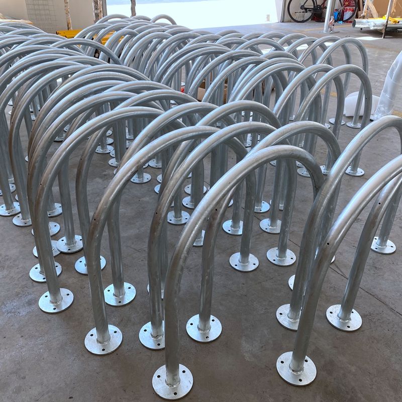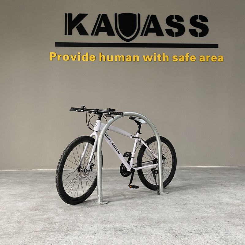Poteau d'attelage robuste à double face pour vélo 2 cerceaux en U à boucle large inversée commerciale dans le support de stationnement de vélo au sol