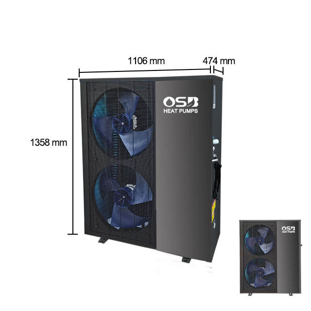 Chauffe-eau commercial à pompe à air avec onduleur, alimentation solaire et électrique, R290/R32, 8-18 kW, chauffage/refroidissement pour usage extérieur