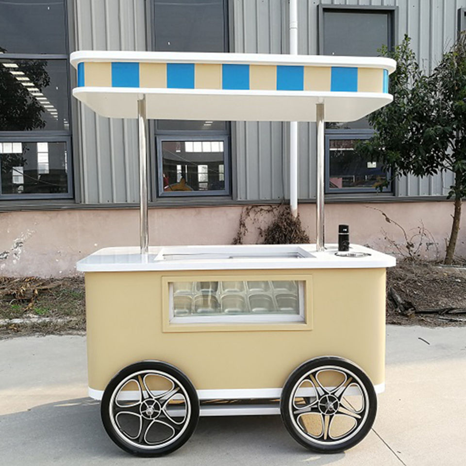 Chariot de crème glacée italienne commercial, chariot à pousser à la main, chariot de crème glacée dure, kiosque de crème glacée en plein air, chariot de gelato, chariot de nourriture mobile, design