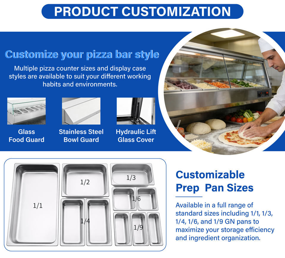 Nom du produit:Table de préparation pour salades, sandwichs et pizzas, réfrigérateur