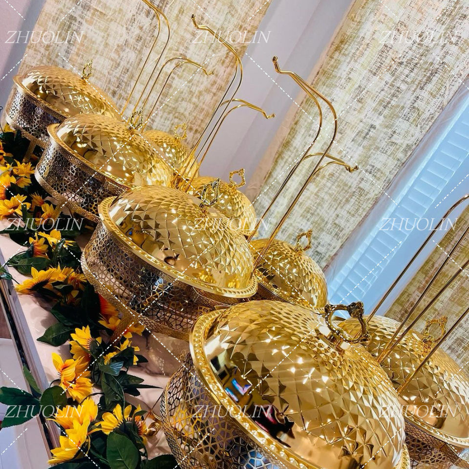 Chauffe-plats de buffet de luxe doré rond pour cuisine professionnelle, table de cuisson, réchauffeur d'aliments pour œufs, plats de présentation pour traiteur
