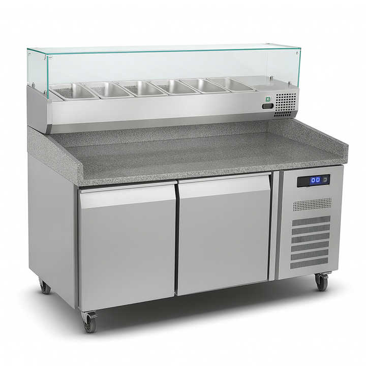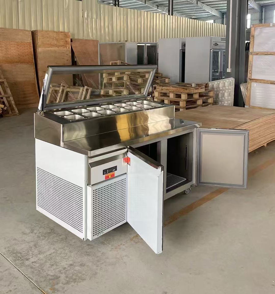 Équipement de cuisine commerciale, table de travail en acier inoxydable avec congélateur, refroidisseur de table, table de préparation pour sandwichs, pizzas, réfrigérateur