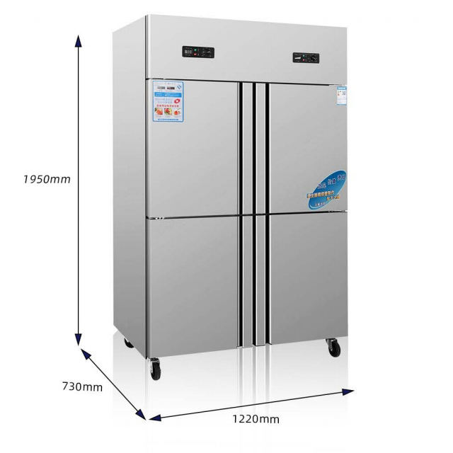Équipement de cuisine commerciale congélateur vertical en acier inoxydable à deux portes et refroidisseur d'air de réfrigérateur en vente 4 portes