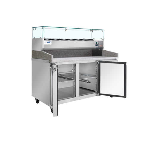 Équipement de réfrigération pour cuisine commerciale 59 pouces. Station de préparation de pizzas avec plateau en granit, support pour récipients à condiments en acier inoxydable, modèle