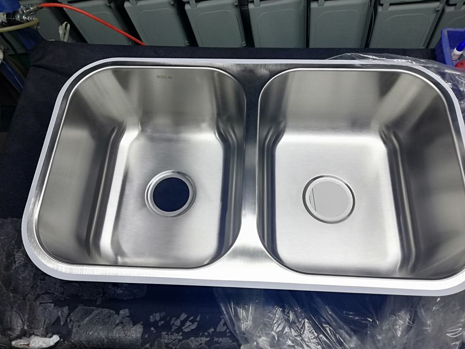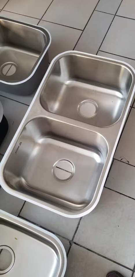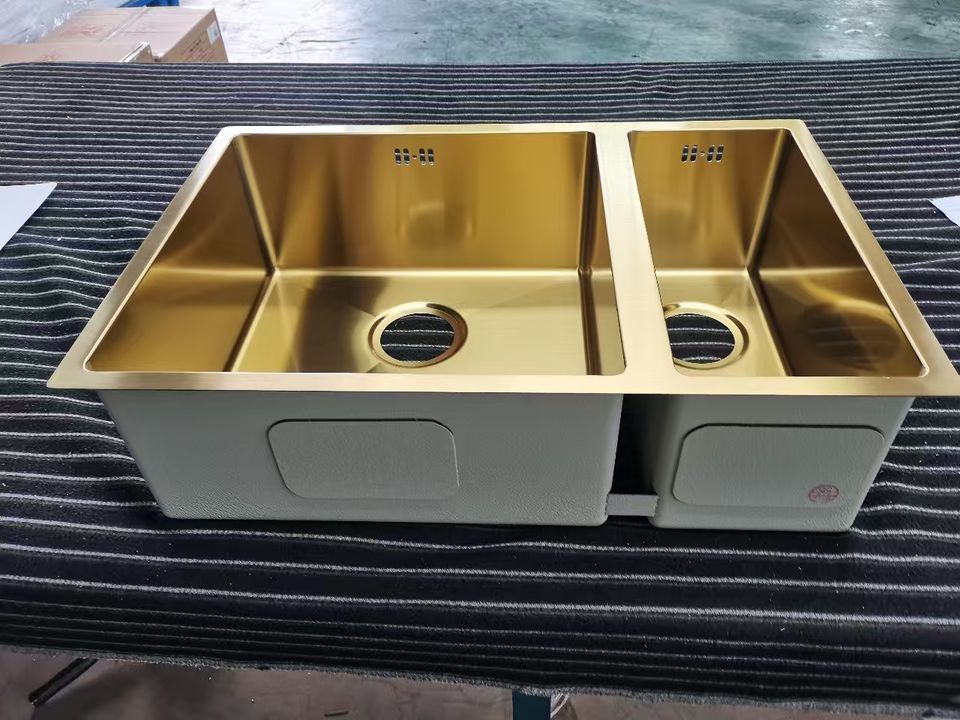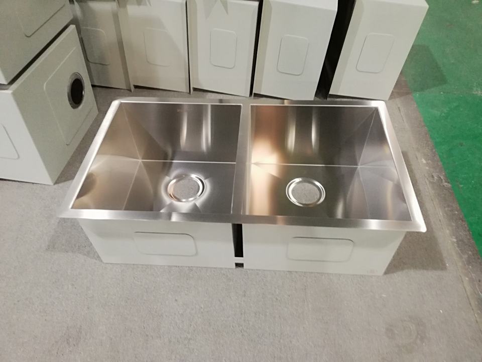 Évier de cuisine commercial fait à la main, grand double bac, acier inoxydable 304, forme carrée, sous plan, avec robinet en option
