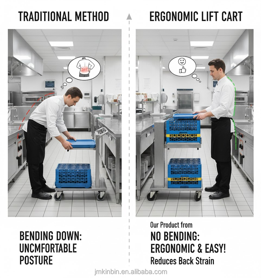 Chariot de transport empilable automatique en acier inoxydable poli pour lave-vaisselle de cuisine professionnelle