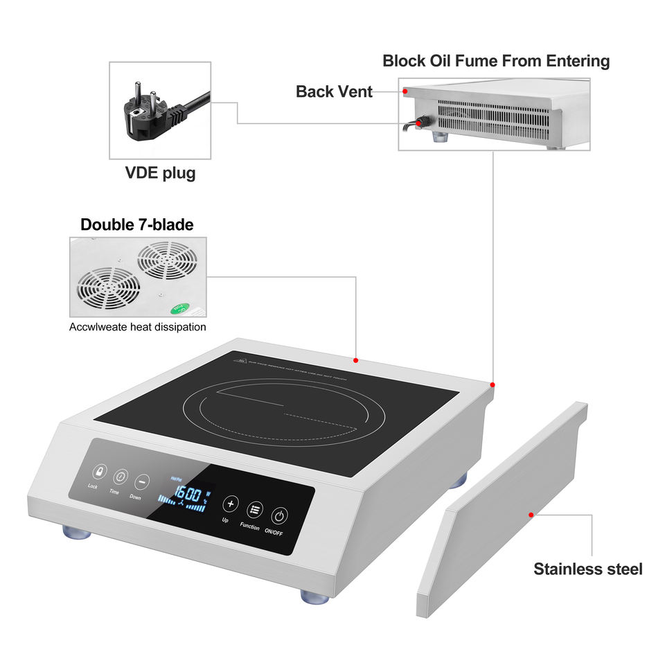 Table de Cuisson à Induction Électrique Professionnelle en Acier Inoxydable à Foyer Unique, Équipement de Cuisine pour Restaurants