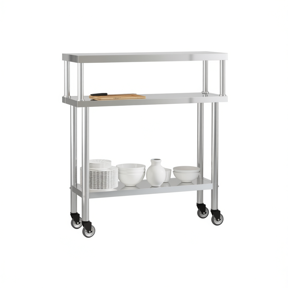 Table de travail pour cuisine commerciale 43,3x11,8x47,2 en acier inoxydable avec étagère supérieure autoportante et roulettes