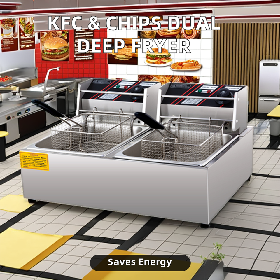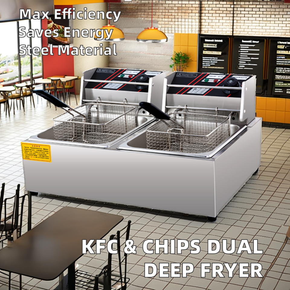 Friteuse électrique commerciale grande capacité avec deux bacs, équipement de cuisine en acier inoxydable