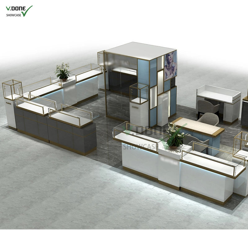 Vitrine d'affichage de magasin de bijoux de luxe commercial Design décoratif armoire à bijoux en verre comptoir de centre commercial kiosque à bijoux JW-010 VIDO