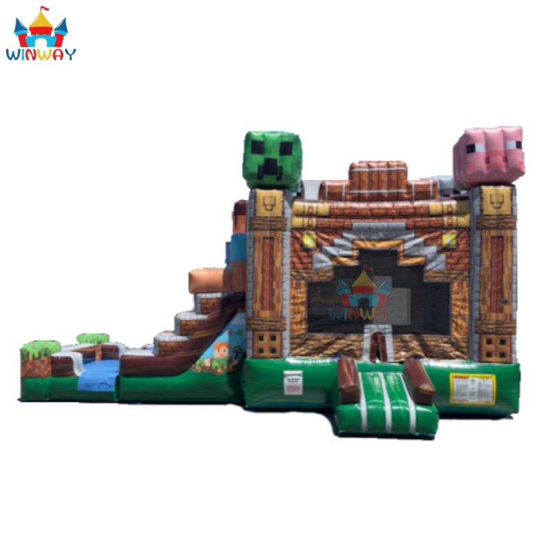 Location de château gonflable commercial WINWAYTOYS Minecraft à double piste, style pixel, en PVC, taille personnalisée, pour le plaisir