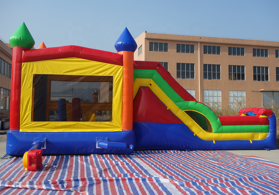 Château gonflable commercial en PVC de qualité supérieure, combo toboggan et aire de saut, taille personnalisable, installation facile pour les locations de fêtes d'enfants