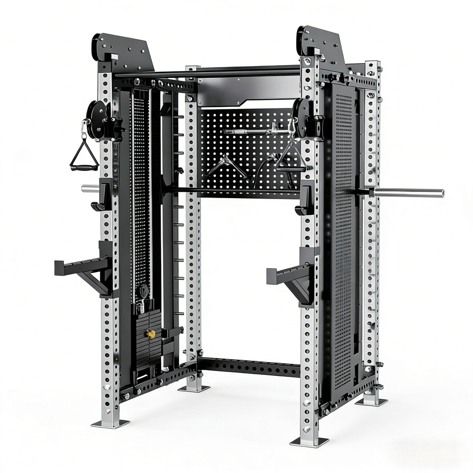 Station de musculation multifonctionnelle commerciale avec machine Smith et crossover intégrés – Équipement d'entraînement de musculation