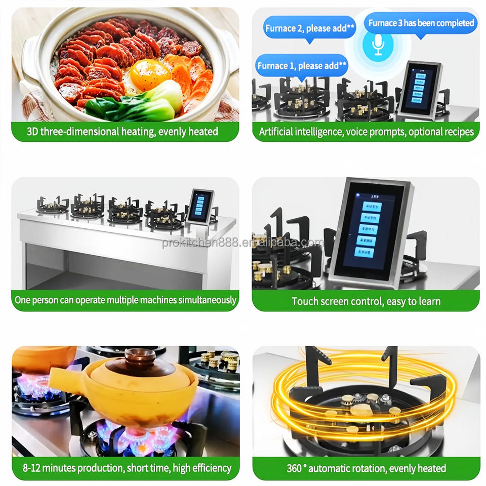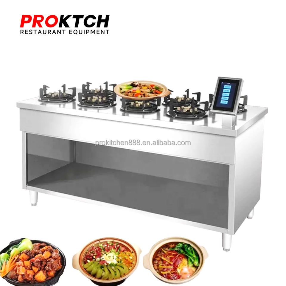 Pot multi-tête commercial marmite de poulet à ragoût Machine à riz cuisinière à gaz intelligente multi-tête 1000 fonction de mémoire de recette fournie