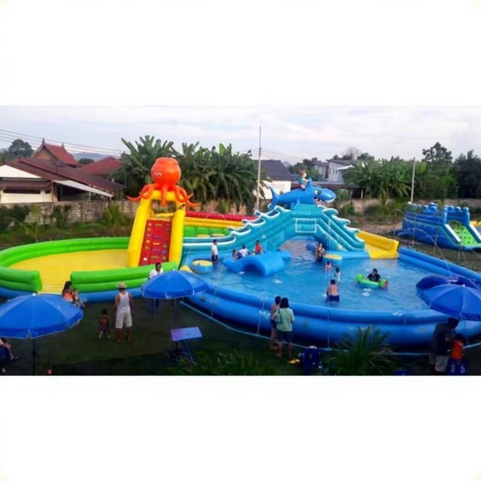 Glissières d'eau gonflables de poulpe Commercial avec piscine pour terrain de jeu extérieur