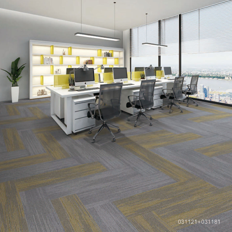 Dalles de moquette commerciales pour bureaux, en nylon à boucles, amorties, modernes, modulaires, de luxe, avec support en PVC, résistantes aux taches, en PET
