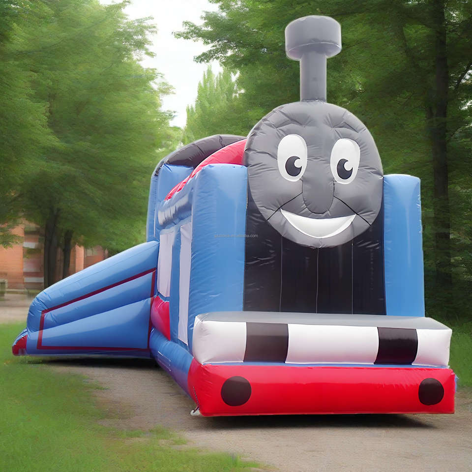 Videur sautant gonflable de thème de Train de bande dessinée de maison rebondissante gonflable commerciale de PVC avec la glissière pour le jeu extérieur