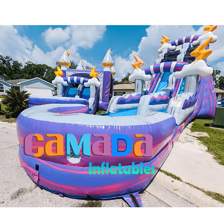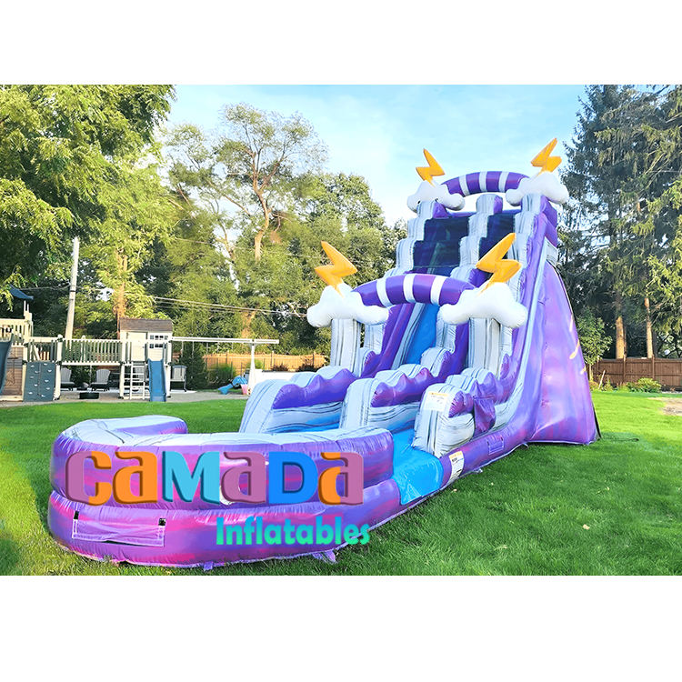 Glissière à voie unique pourpre gonflable commerciale de glissière d'eau de foudre de tonnerre de PVC pour la partie de piscine