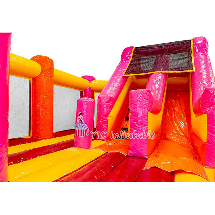 Château gonflable commercial rose Princesse avec toboggan intégré, idéal pour les fêtes en extérieur, les anniversaires de filles et la location événementielle