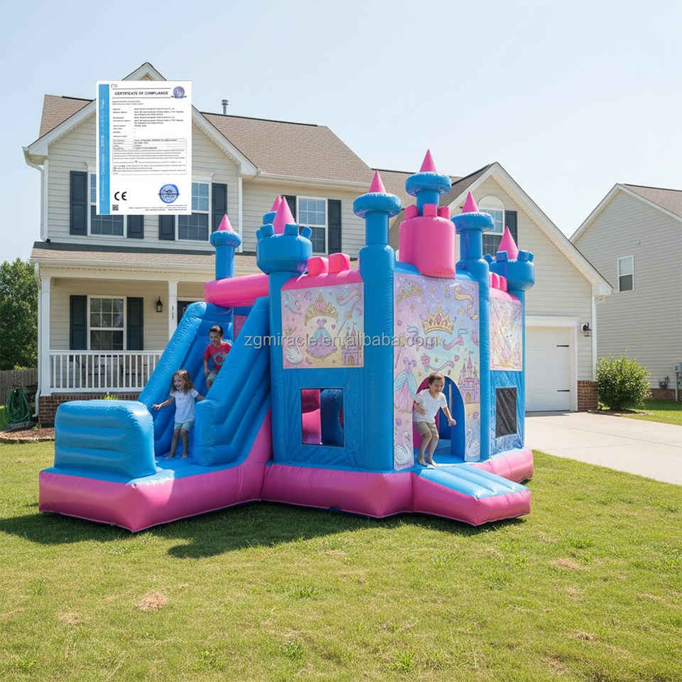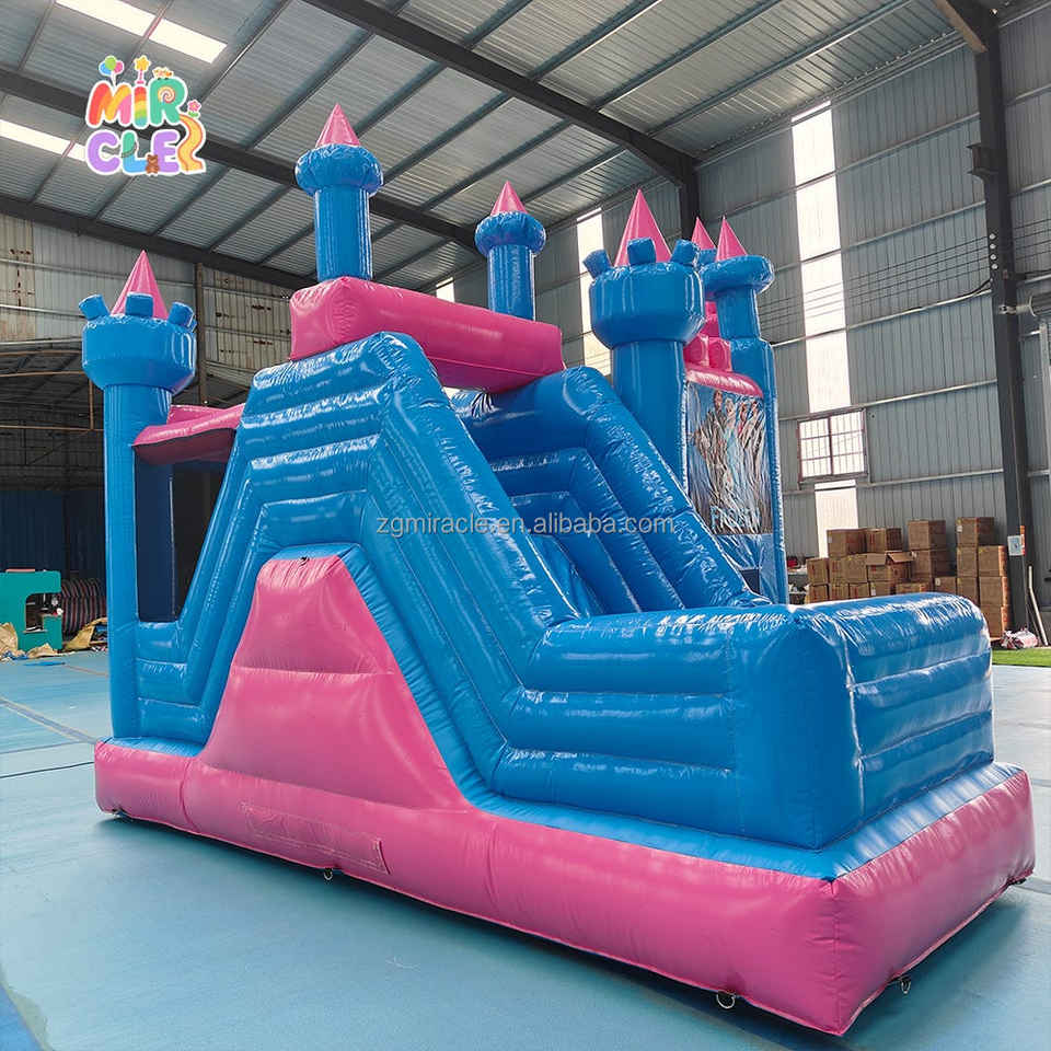 Château Gonflable Princesse Commercial Combo avec Toboggan, Bleu Rose Jumping Castle pour Location Anniversaire Filles