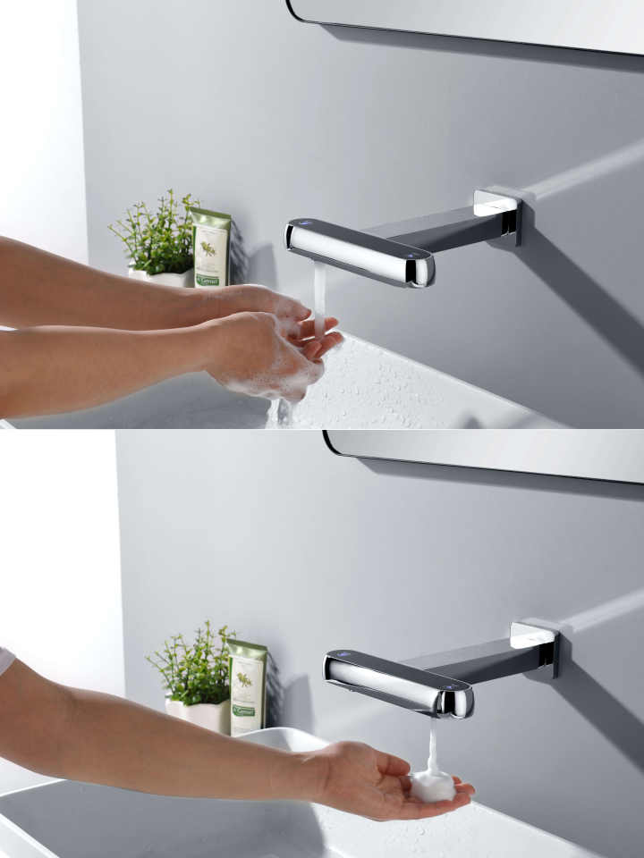 Distributeur de savon mural à capteur commercial, mélangeur d'eau chaude et froide chromé, trou unique, capacité de 3000 ml pour salle de sport, chambre à coucher
