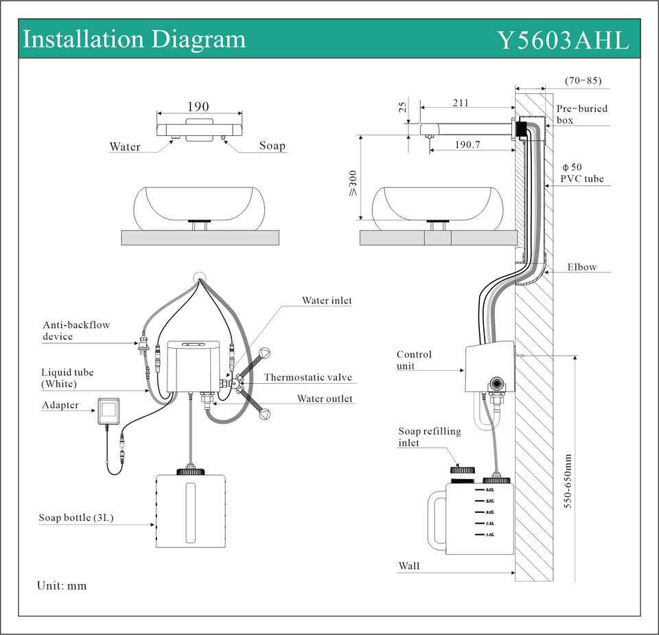 Suitable water pressure:0.05-0.8MPa (0.5-8Bar)