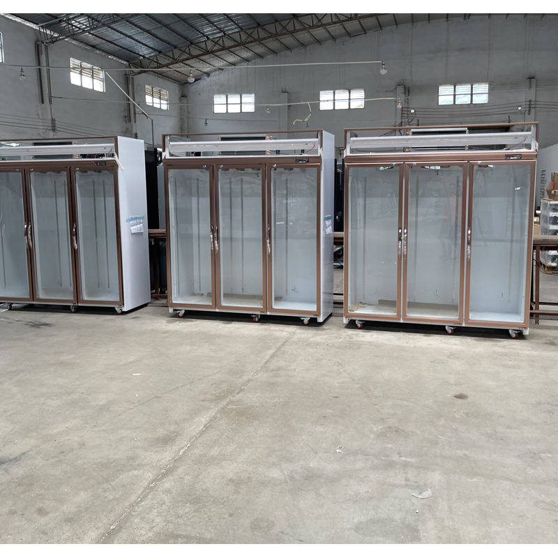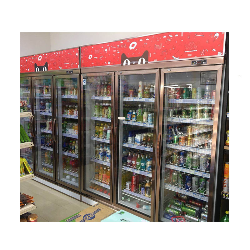 Réfrigérateur commercial vertical à température unique, 3 portes vitrées, grand refroidisseur de boissons, utilisé dans les supermarchés pour les boissons fraîches
