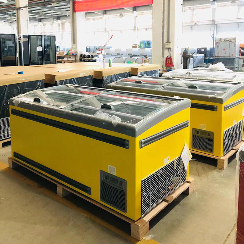 Nom:Les congélateurs en verre incurvés de porte de crème glacée d'arc ouvert supérieur de Deep Island