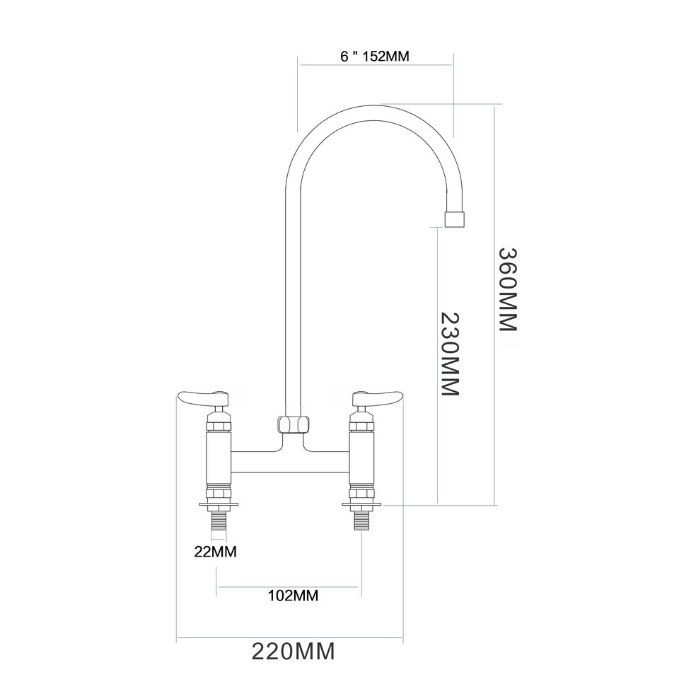 Robinet de cuisine commercial en laiton massif chromé, bec pivotant à 360°, mitigeur chaud/froid à double poignée pour la restauration et la maison