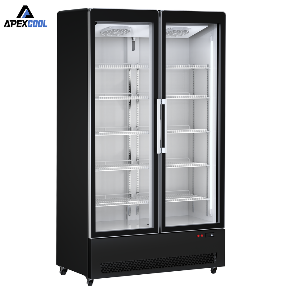 Réfrigérateur à boissons commercial en acier inoxydable à double porte, refroidissement direct, température unique