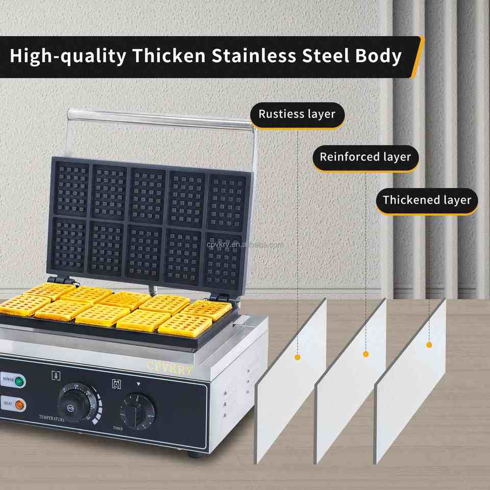 Gaufrier Rectangle en acier inoxydable commercial 10 pièces gaufrier belge industriel antiadhésif 110/220V temps de température collation