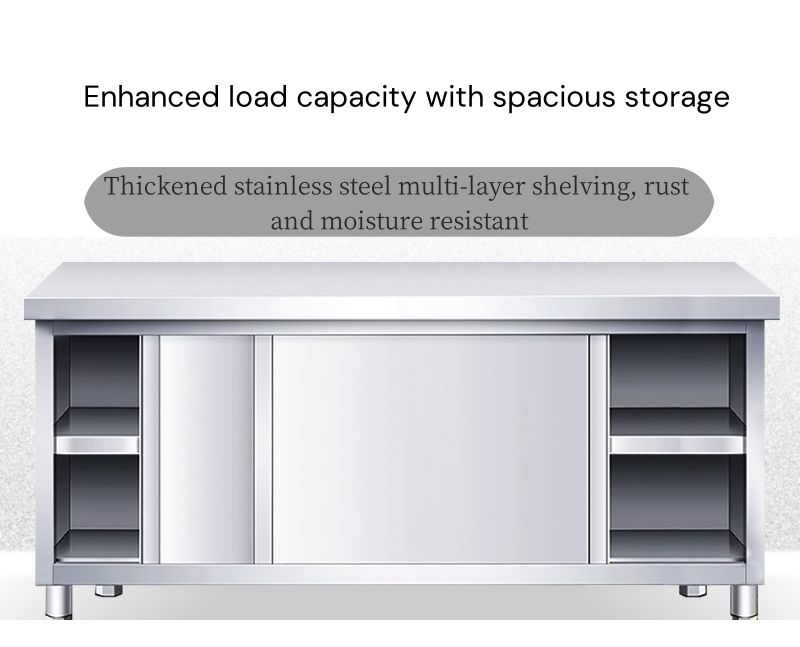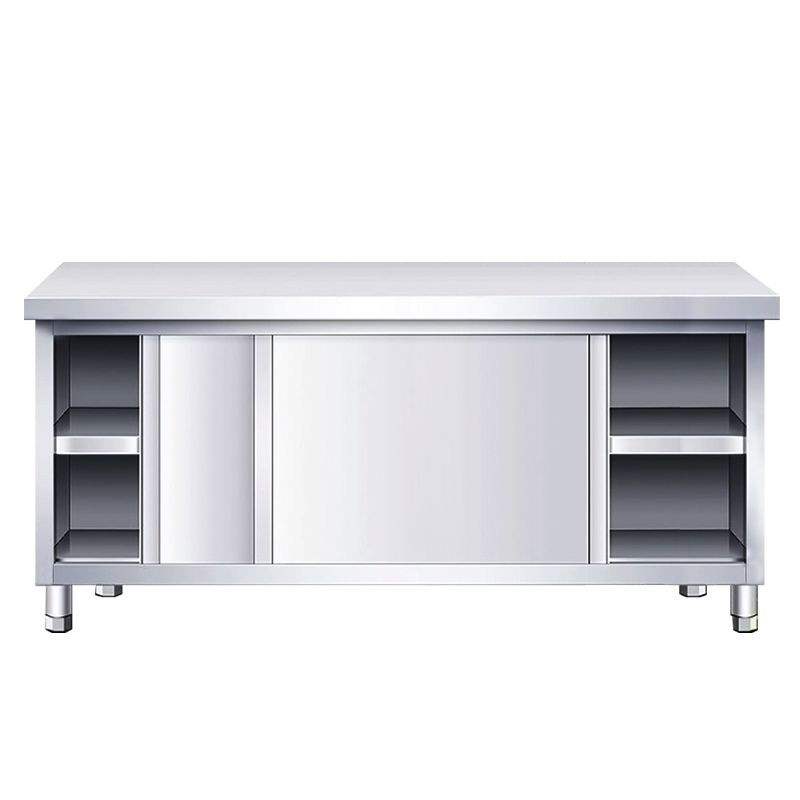 Table de Travail Commerciale en Acier Inoxydable avec Porte Coulissante, Armoire de Rangement à Trois Niveaux sur Mesure pour Restaurant, Cuisine, Traiteur