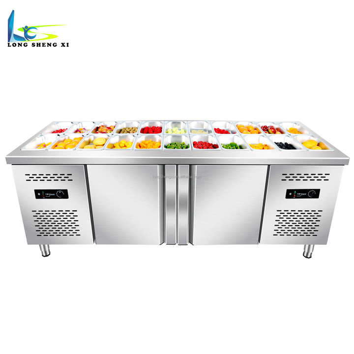 Réfrigérateur de travail réfrigéré de barre de fruits de refroidisseur de salade de dessus de table d'acier inoxydable commercial avec le refroidissement par air