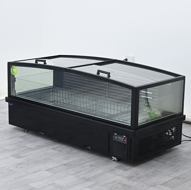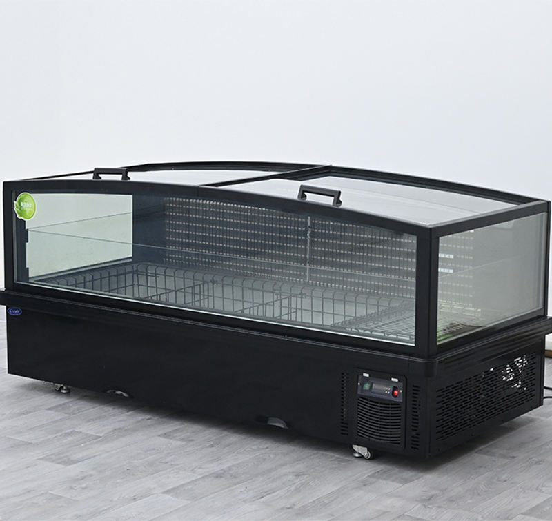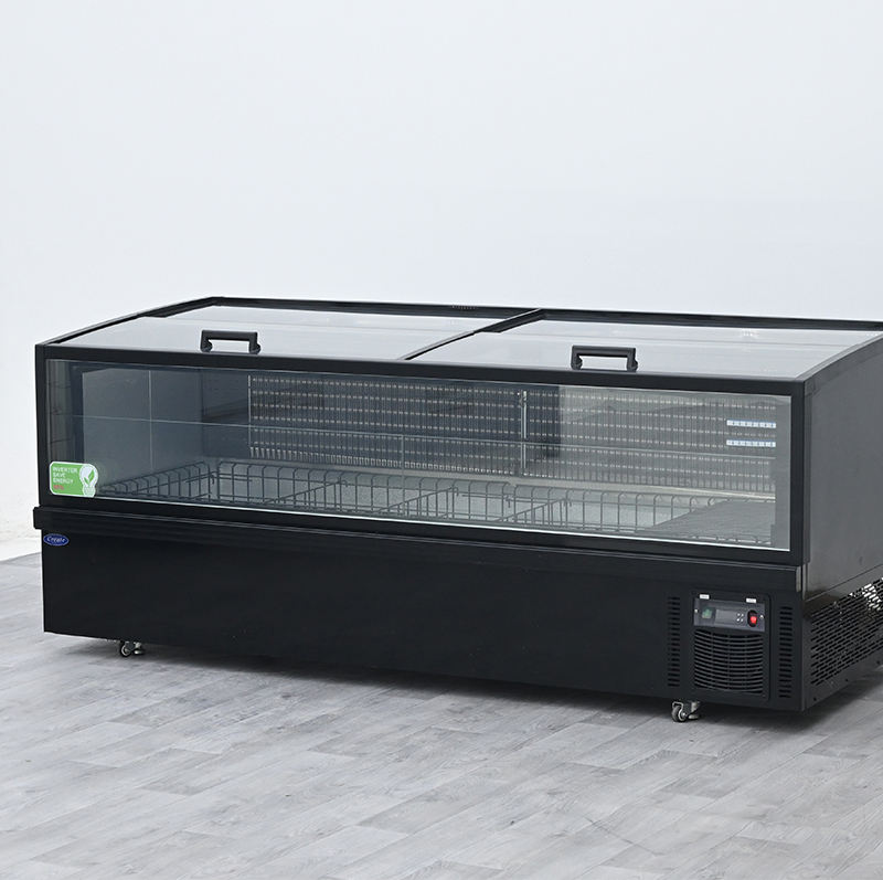 Congélateur îlot commercial à porte coulissante frontale, écoénergétique, pour aliments surgelés, avec petite fenêtre, type coffre profond