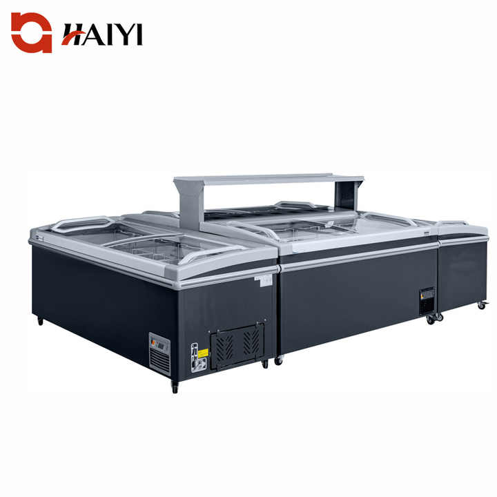 Commercial Supermarket Refrigeration Display Equipment Air Glass Sliding Door Merchandiser Refrigerator Combination Island