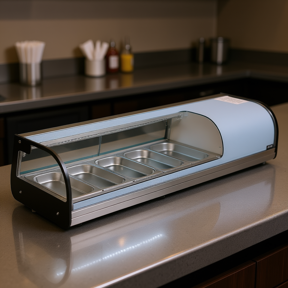 Vitrine à sushi commerciale 1,8 pi³ 5 plateaux, comptoir en verre incurvé, éclairage LED, contrôle numérique de la température