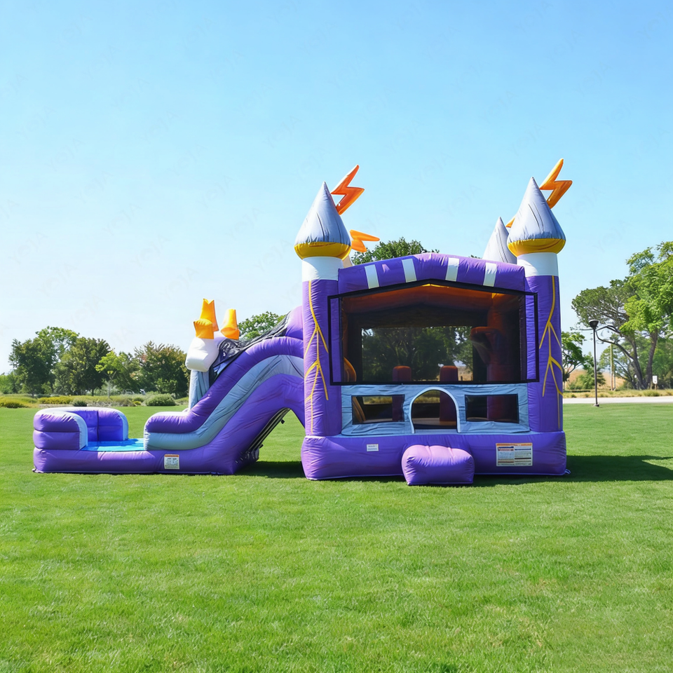 Château gonflable commercial Thunder Castle avec double toboggan, combo de fête en plein air, château de saut pour les événements d'anniversaire des enfants