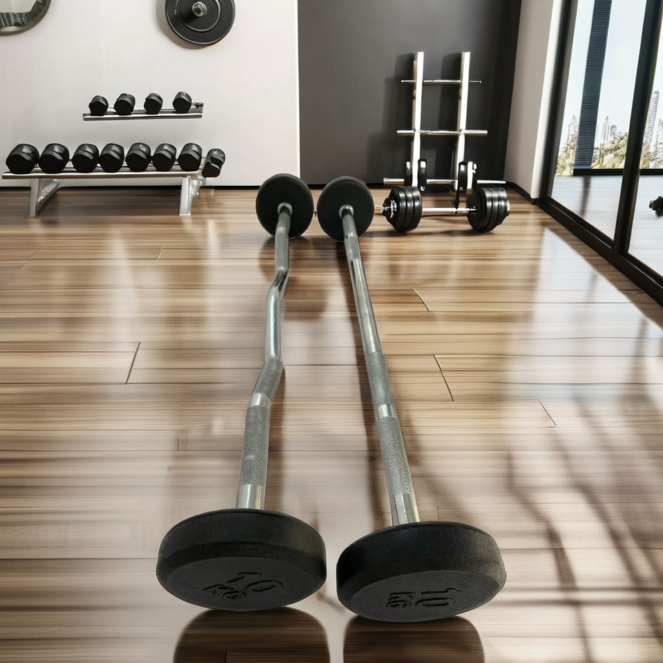 Barre de musculation en acier chromé à chaud pour usage commercial, avec poignée antidérapante confortable et capacité de charge intégrale, idéale pour hommes.