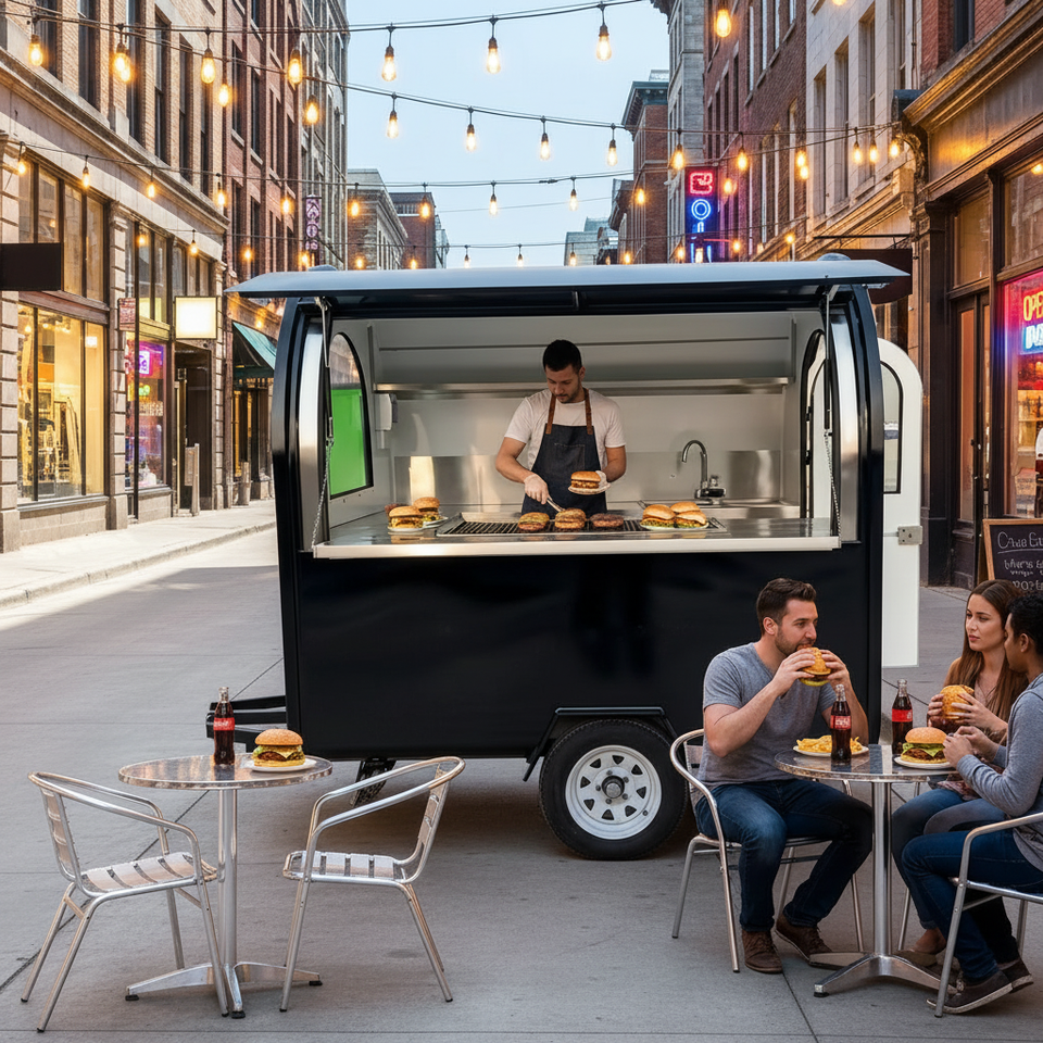 Camion de restauration rapide mobile entièrement équipé, personnalisé, en acier inoxydable, pour usage commercial, remorque de concession alimentaire